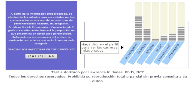 TEST VOCACIONAL REALIZADO POR LAS ESTUDIANTES LUISA FERNANDA LUQUE, VALENTINA ESPARZA, PAULA ANDREA MOJICA, CAROL TATIANA PABÓN, LAURA JULIANA PEÑA Y LINA ZEA DEL CURSO ONCE A - COLEGIO DE LA PRESENTACIÓN LUNA PARK.