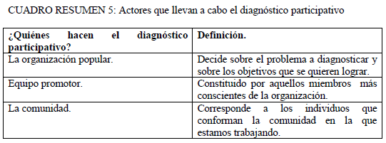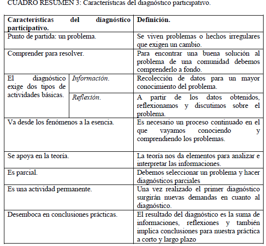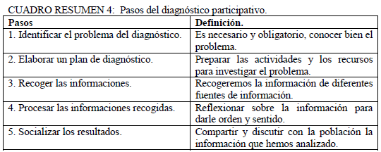 Cuatro etapas: 1. Diagnóstico participativo