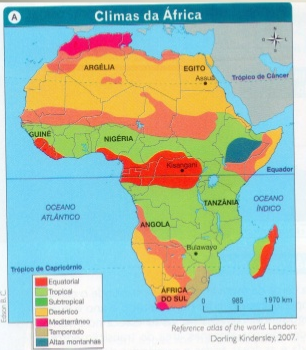 continente -- o Atlas e a região do Cabo -- apresentam clima do tipo mediterrâneo seco, com chuvas na