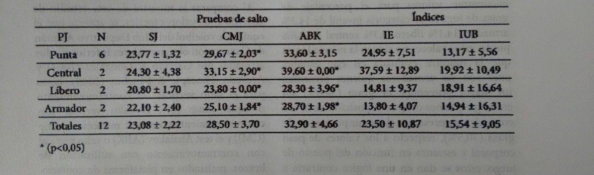 la posición libero tiene los valores más bajos en fuerza de salto vertical