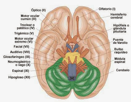 Los nervios craneales son 12 pares de nervios que se pueden ver en