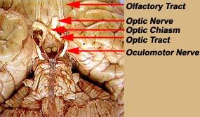 la superficie ventral (base) del cerebro. Algunos llevan información