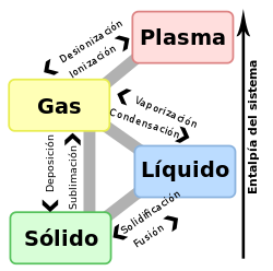 Distintos estados o fases que pueden obtenerse, para cualquier sustancia o mezcla,