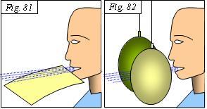 1. Al soplar por encima de una hoja de papel dispuesto horizontalmente bajo la boca, como se