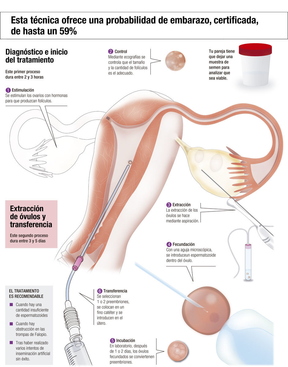 Despues de 3 o 5 dias se transfiere el embrión a la mujer.
