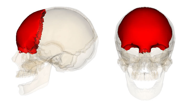 SE DISTINGUE LA LINEA CURVA TEMPORAL SUPERIOR, LINEA CURVA TEMPORAL INFERIOR, GIBA PARIENTAL, AGUJERO PARIENTAL