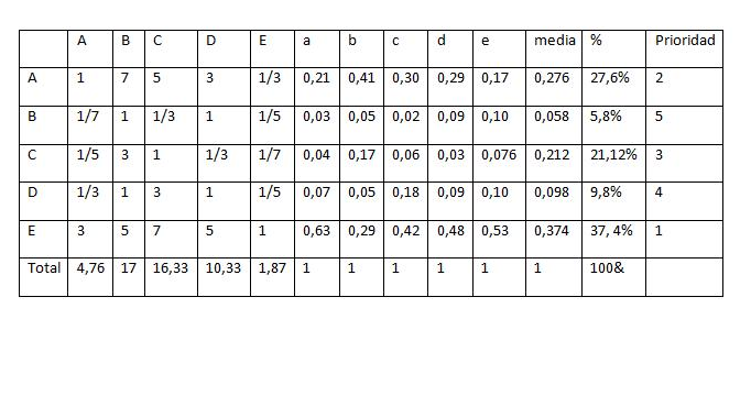 Matriz de selección de objetivos Saaty