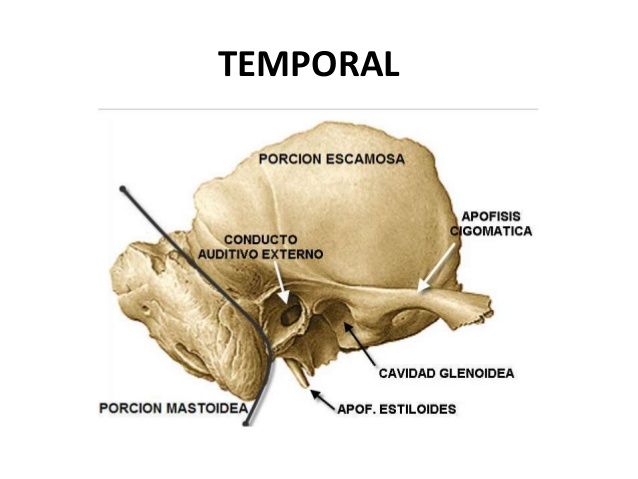 de los huesos parietales y un poco por arriba del esfenoides, y