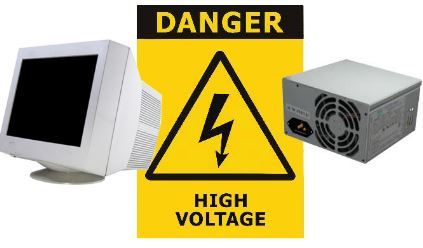 Fuentes de alimentación y monitores CRT contienen alto voltaje