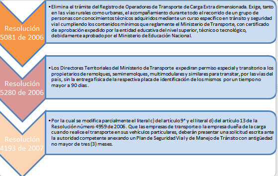 En esta se fijan las normas para conceder los permisos para el transporte de carga indivisible extrapesada y extradimencionada y las especificaciones de los vehiculos destinados a esta clase de transporte.