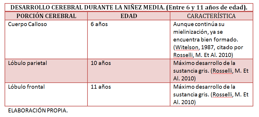 maduración cerebral; en la niñez temprana se
