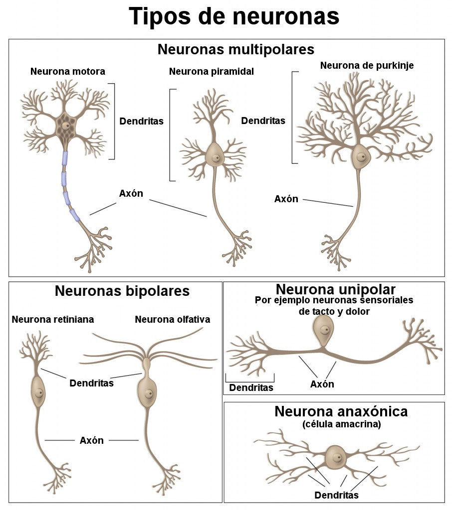 Según la función de la neurona pueden ser: Motoras, sensoriales o