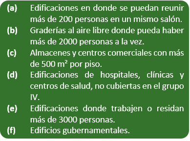 caso de una emergencia (un sismo u otro desastre naural), esta clasificación de acuerdo al