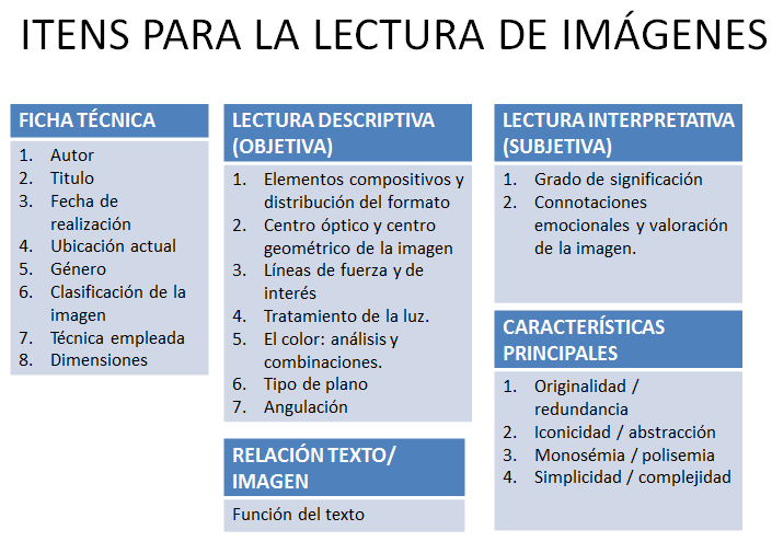 - Lectura de imagenes: interpretación de mensajes visuales y de lectura objetiva y subjetiva de ellas