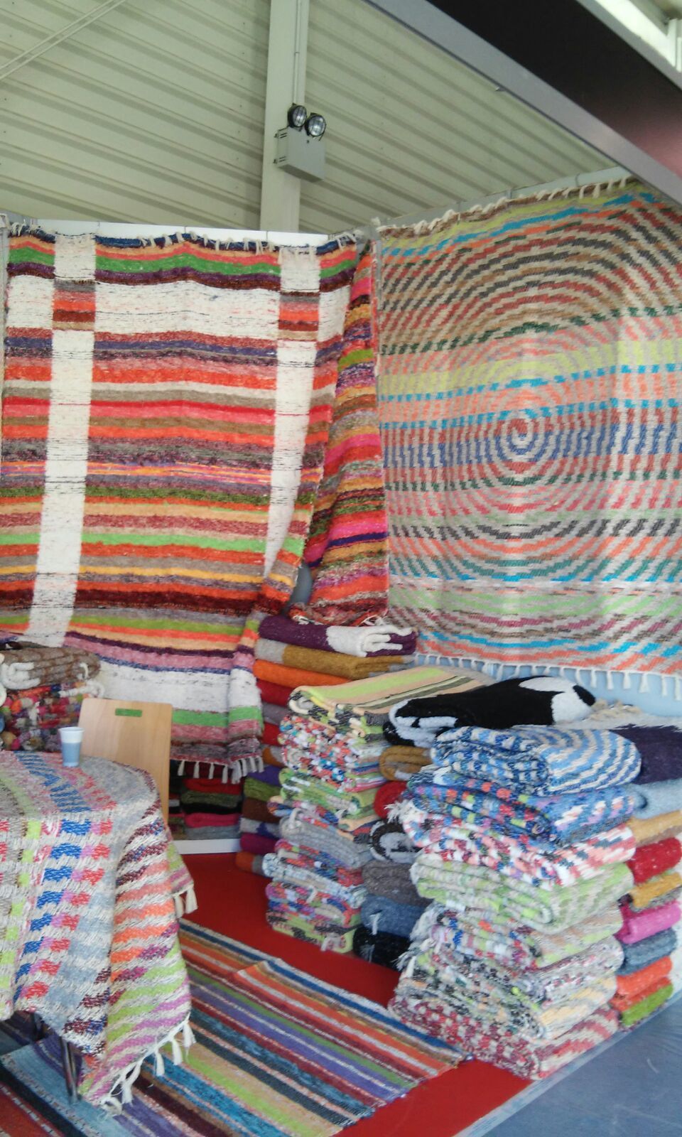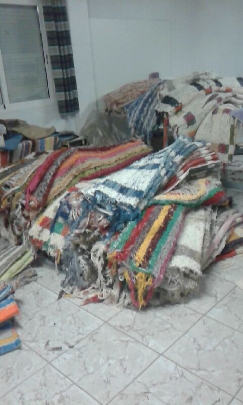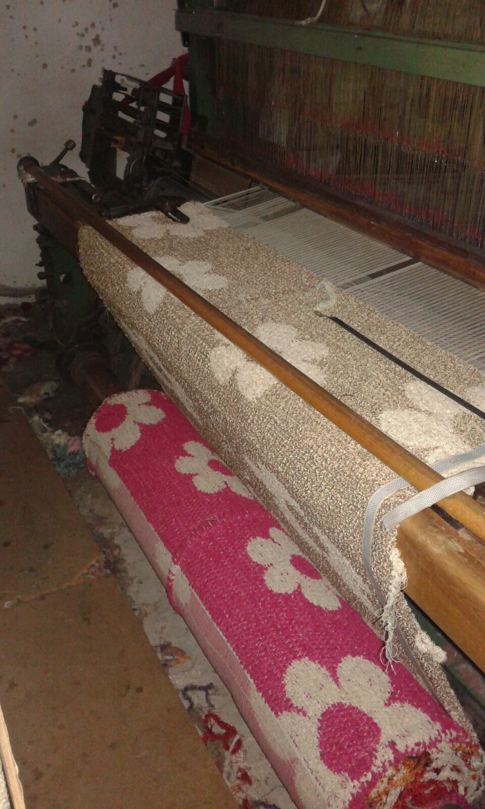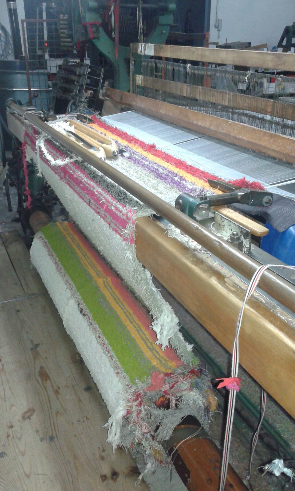 alfombra esta tejida, se extrae del rulo del telar , se hace la terminación ( que puede ser