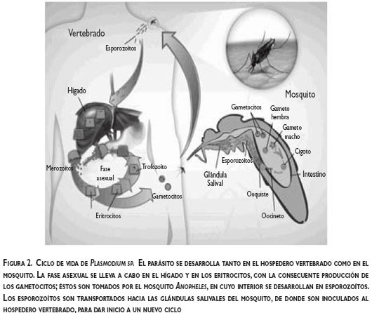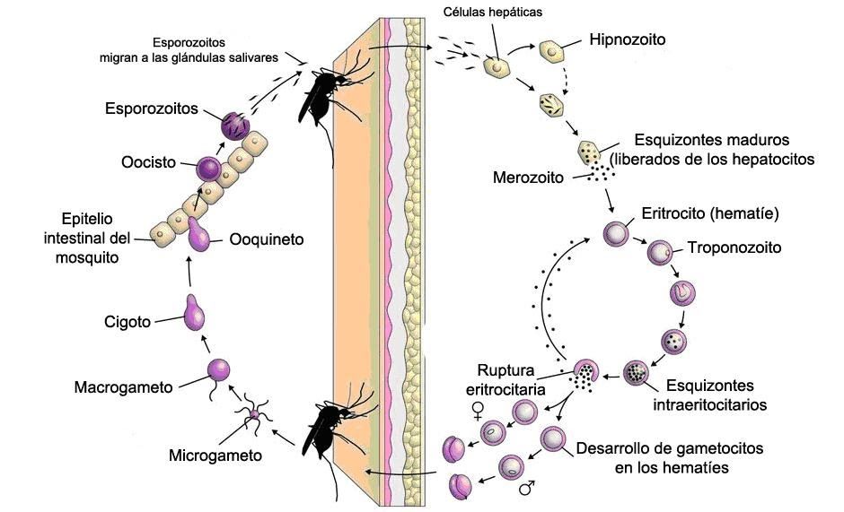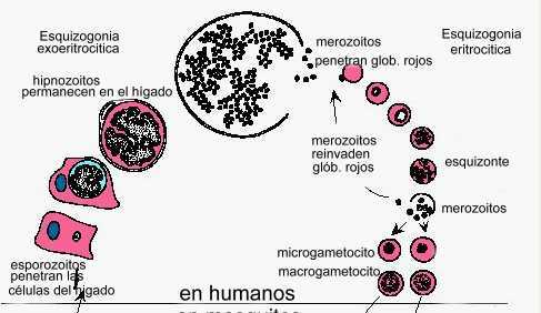 el mosco infectado pica e inocula a una persona sana con los esporozitos