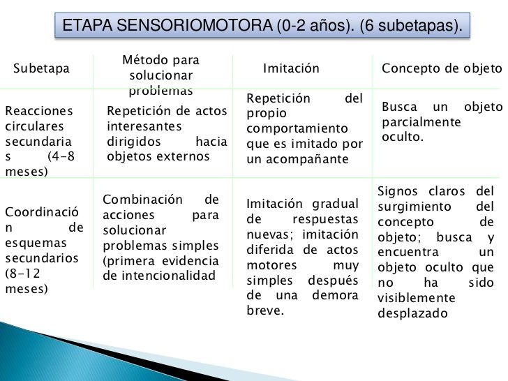 Del nacimiento a los 2 años - se divide en 6 sub-etapas