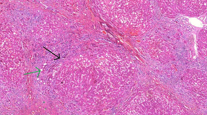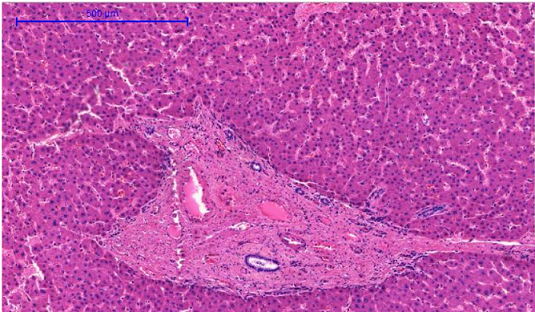 Presença de infiltrado linfocitário no espaço porta ou septos