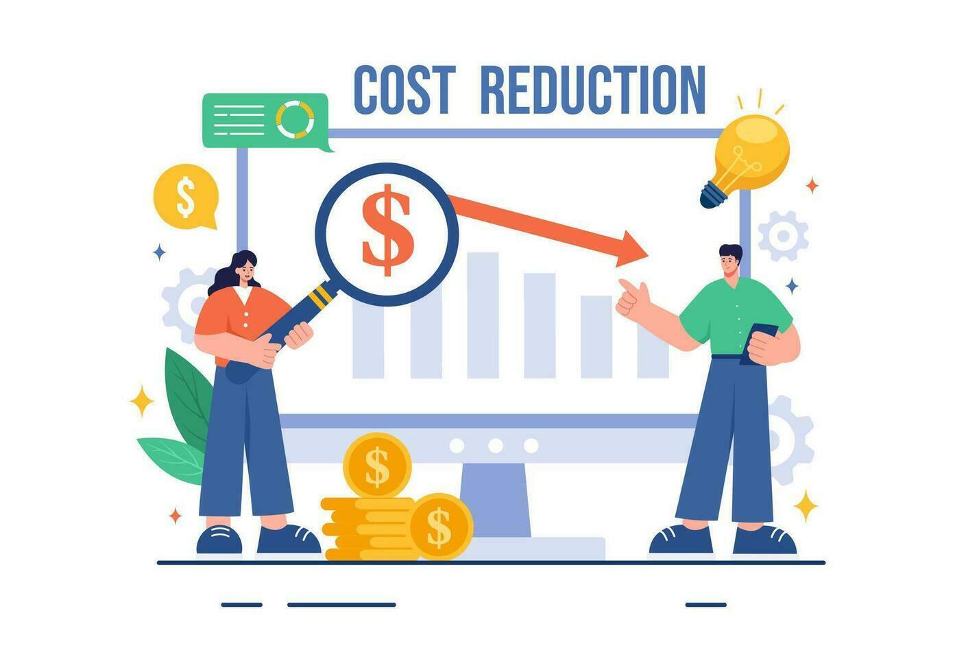 Cost Reduction Illustration Depicting Decrease Price Minimization Or Falling Profit Rates In Business In A Flat Style Cartoon Background Vector (image/jpeg)