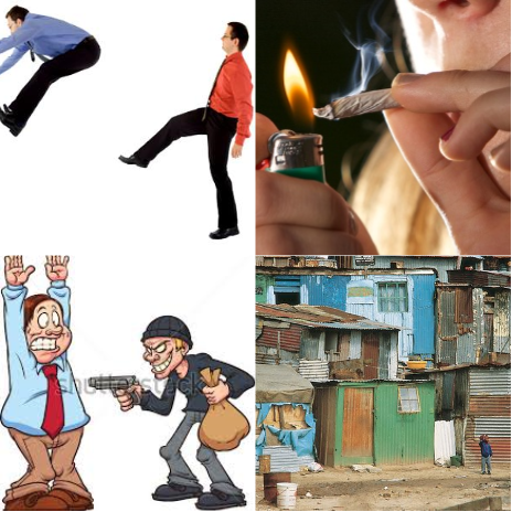 el desempleo, la drogadicción, la delincuencia, la marginalidad