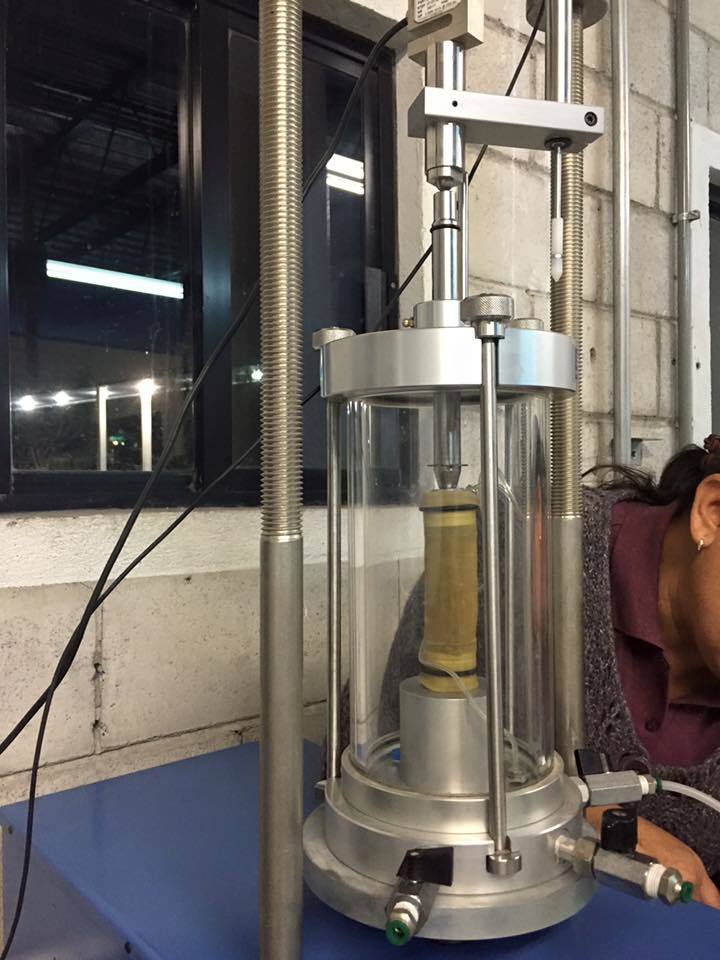 Colocar el espécimen en el equipo triaxial de la manera más centrada que pueda.