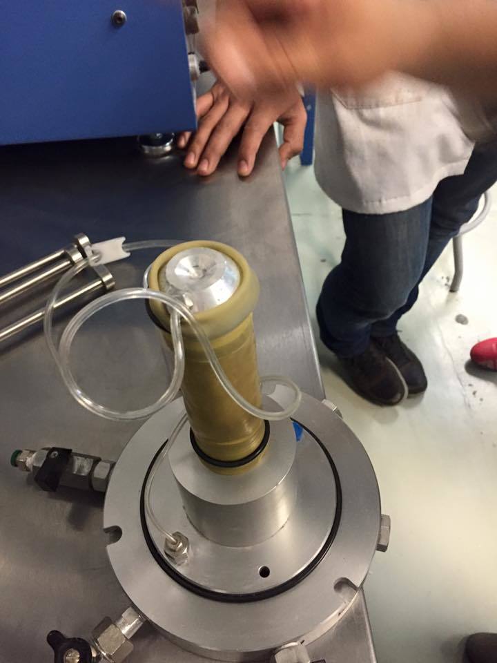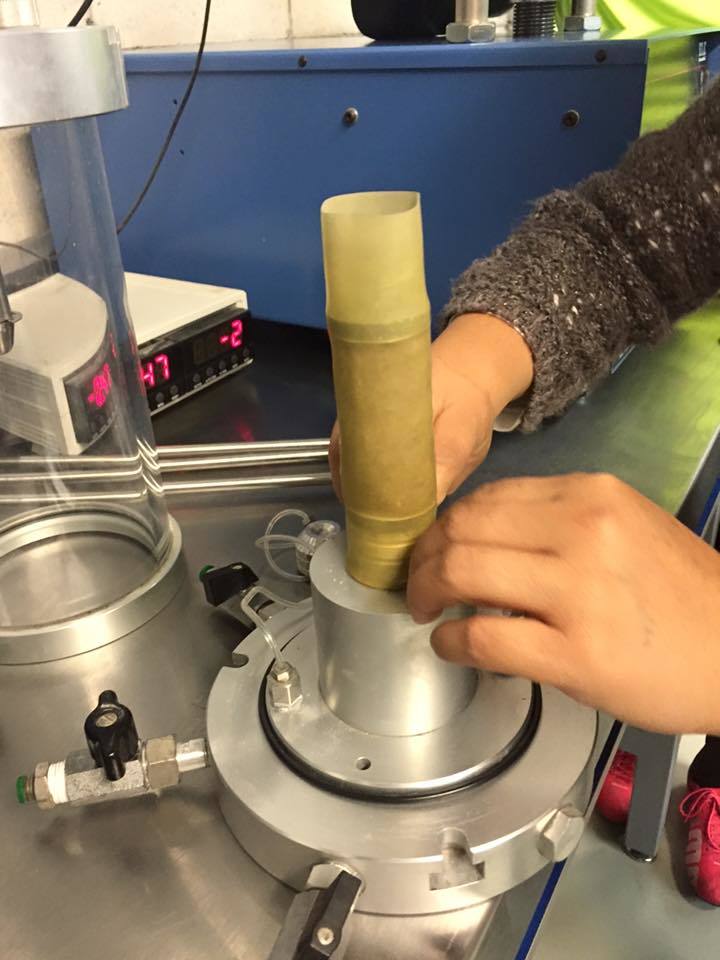 Introducir el espécimen (ya labrado) dentro de la membrana látex
