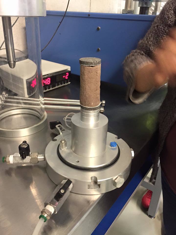 Colocar una piedra porosa en la parte inferior y superior del espécimen
