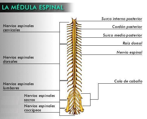 - Transmite, a través de los nervios espinales, impulsos nerviosos a los músculos, vasos sanguíneos y