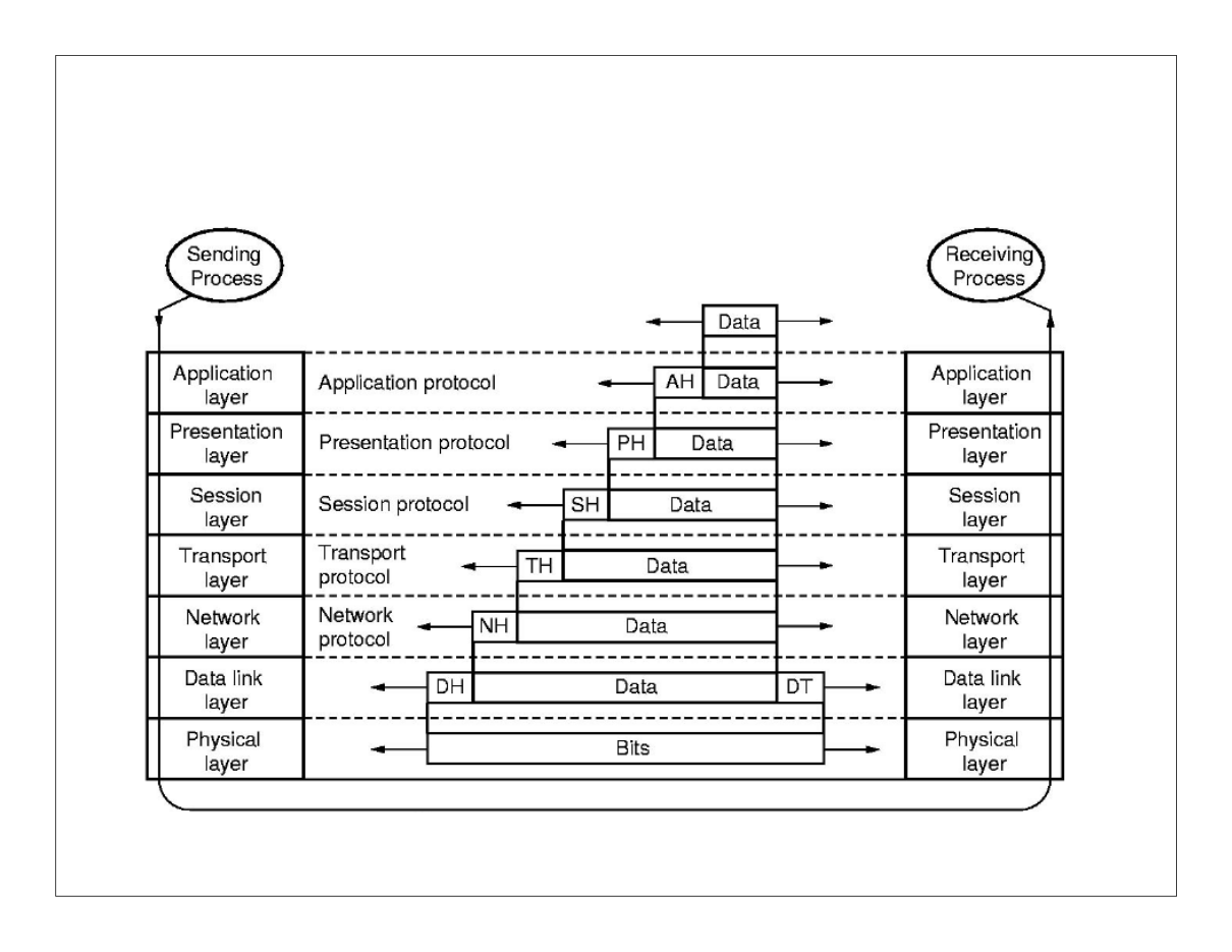 La comunicación es “entre capas similares” La capa n de un dispositivo se