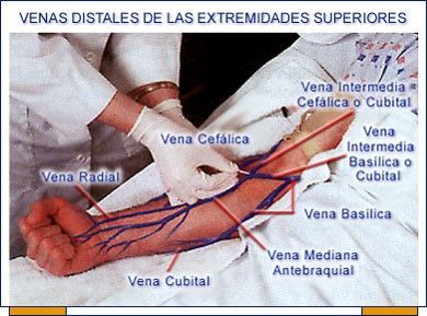 vena basilica, cefalica, mediana del codo