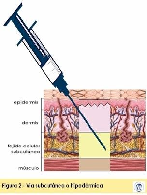 Es la administracion de medicamentos con una aguja hipodermica a traves de piel, musculos, tejido y vena