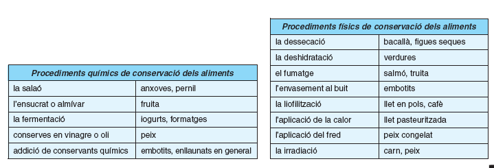 dels aliments, evitar-ne o retardar-ne el
