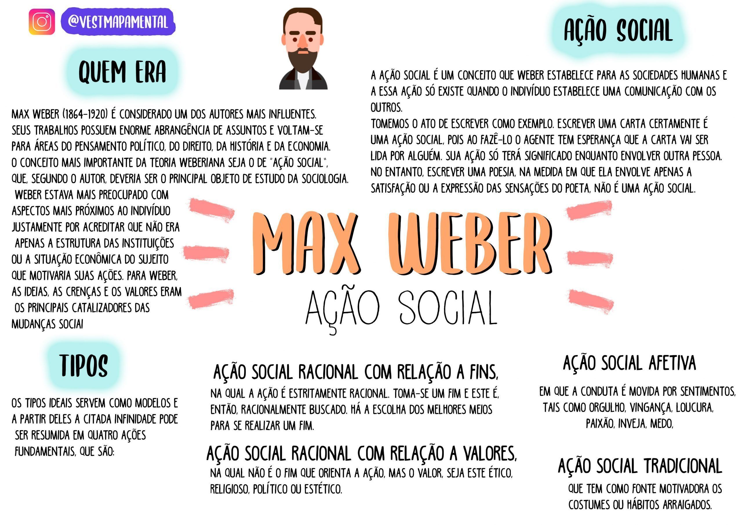 Para Max Weber (1864-1920) a análise da sociedade deve centrar-se nos atores e em suas ações. Para ele, a