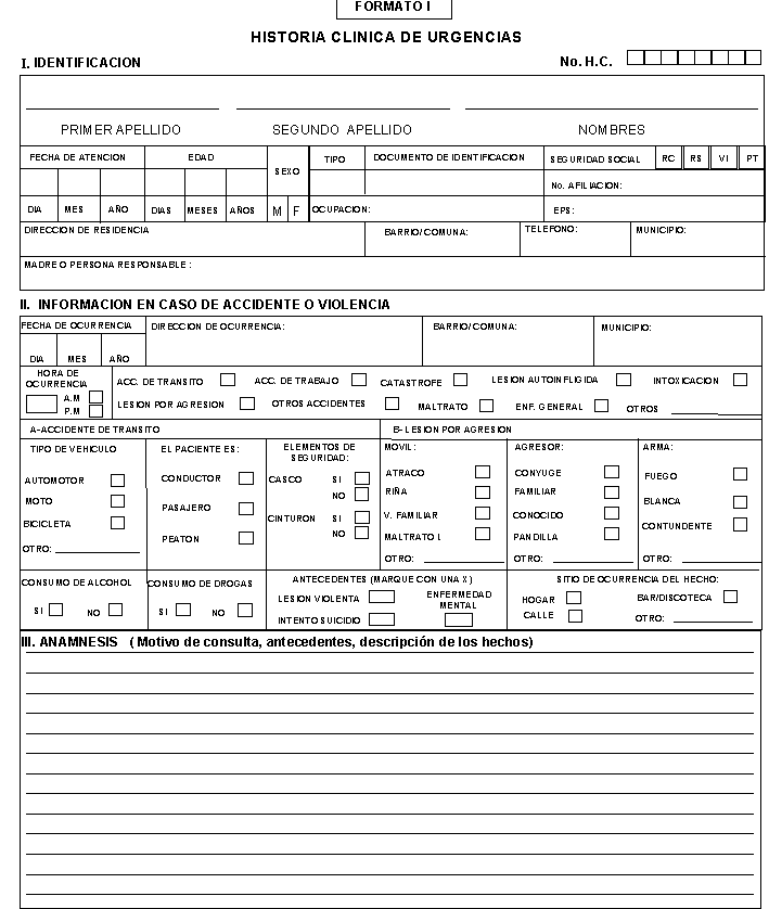 Datos del centro, fecha y hora de admisión. Identidad y datos de filiación del enfermo.
