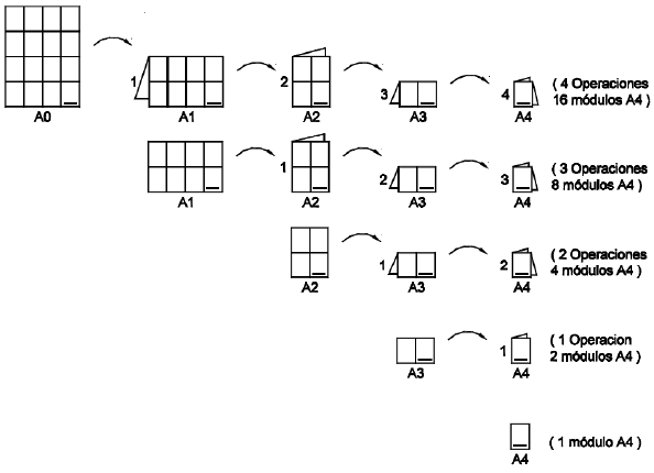 mediante la subdivisión de formato A0 en 16 módulos A4.