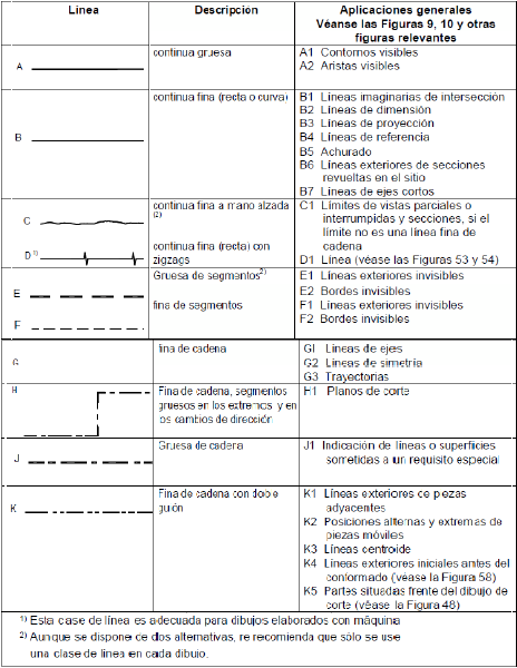 Tipos de líneas: Se deben usar los siguientes tipos: