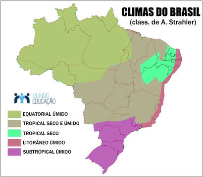 Equatorial: Chove em grande quantidade o ano todo. É bastante úmido, temp. elevadas e com pouca variação ao longo do ano.