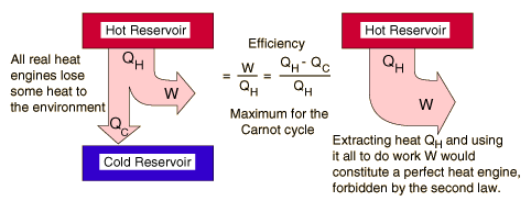 restricciones a la dirección de la transferencia de calor, y a la eficiencia posible en