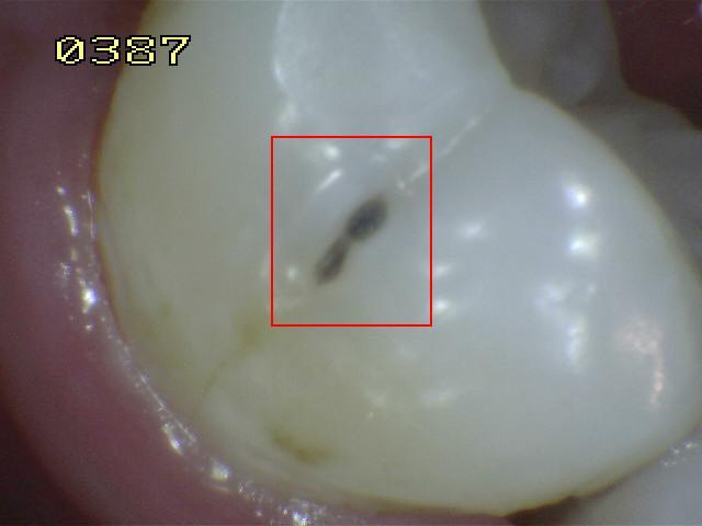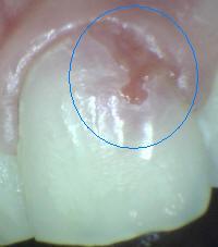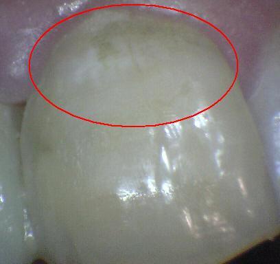ruptura de esmalte , se ve una sombra grisácea , microcavidad ( 3)