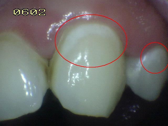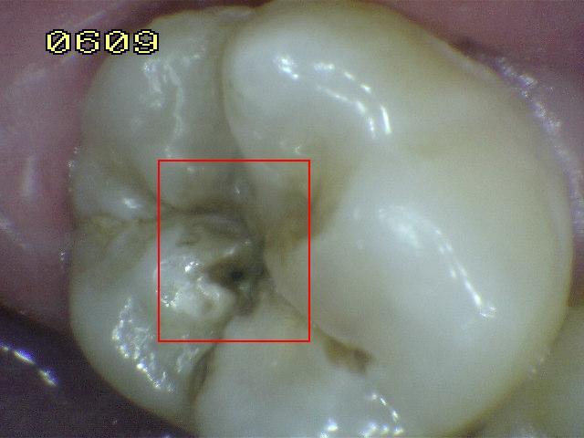 ruptura de esmalte , se ve una sombra grisácea , microcavidad ( 3)