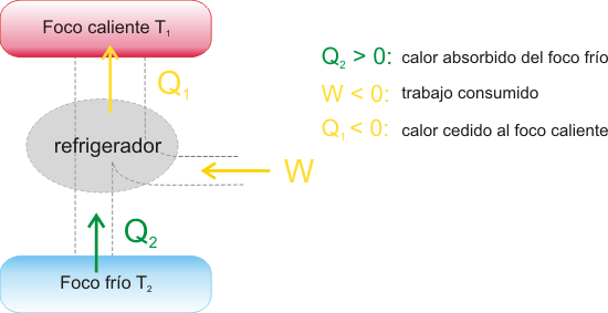 Absorbe una cantidad de calor Q2 de un foco frío a una temperatura T2