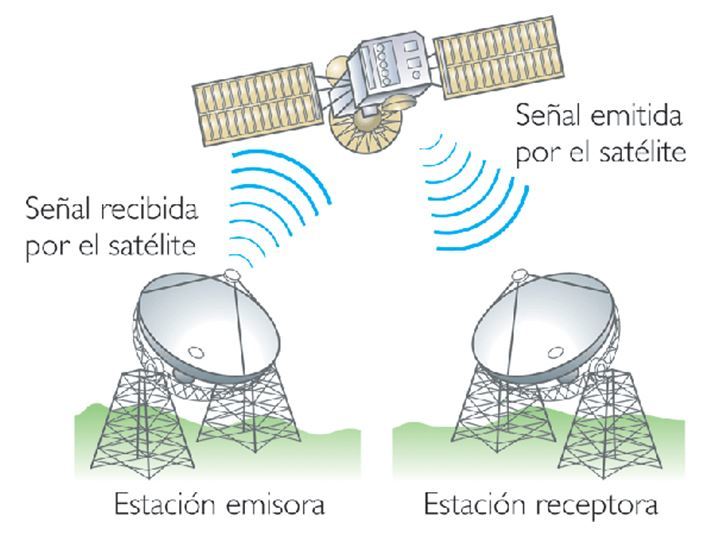 Es un repetidor electrico ubicado en el espacio, recibe señales de la tierra , las amplifica y las devuelve