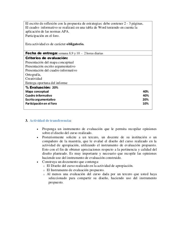 modulo de evaluación del curso