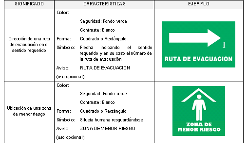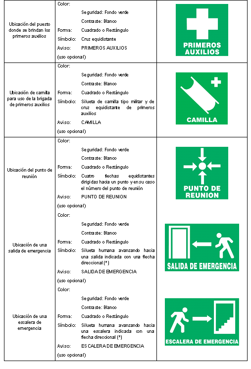 salida de emergencia y escalera de emergencia; así como las señales informativas de emergencia