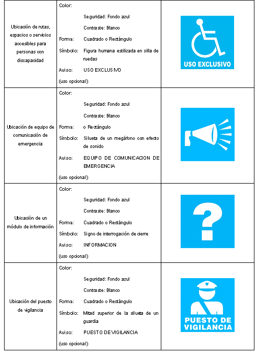 mensaje que la señal proporciona, son de uso opcional, y en su caso deben cumplir lo siguiente: a)