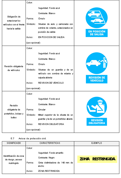 protección civil deben cumplir con las características y contenido de imagen que especifica el punto