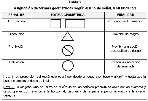 Formas geométricas.- Su aplicación en las señales será conforme a la tabla 3.