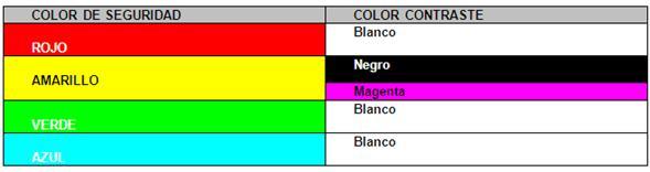 la señal y su base no debe exceder al ancho de la misma, y d) Ser de los mismos colores de seguridad