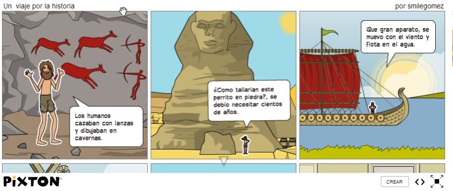 Historieta un viaje por la historia, presentado a traves de un comic realizado en con la herramienta pixton