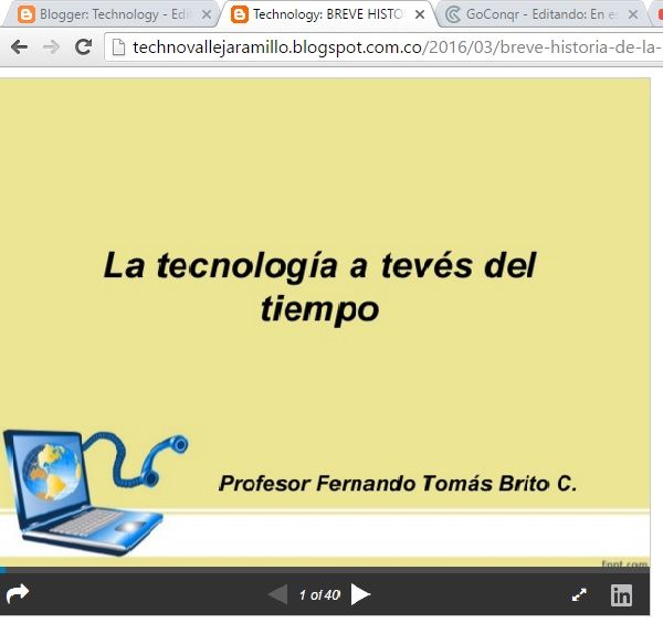 otras herramientas interactivas online, presentacion en slideshare, sobre la historia de la tecnologia